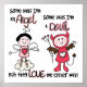 Certains jours un ange, certains jours un diable ? Si cela vous semble familier, vous aimerez ce design d'ange et de diable mignon sur les T-shirts Angel Devil, tasses, sacs, cartes, costumes, autocollants, porte - clés, coussins et autres articles. Dispose d'un ange figuré en bâton dessiné à la main avec une robe de coeur rose debout sur un nuage et un diable avec une fourche!
