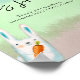 Invitations de douches pour bébés sans sexe. Illustration d'une aquarelle d'animaux boisés : renard avec bleuet dans les pattes, ours avec framboise, hérisson avec poire, lapin (lapin) avec carotte. L'arrière - plan d'aquarelle est multicolore.