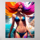 Portrait D'Une Fille Bikini Anime, Maquillage, Explosion D'Écrasement Liquide, Coloré, Très Détaillé, Illustration.