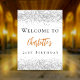 Une affiche de bienvenue pour une fête d'anniversaire de 21e anniversaire (ou de tout âge), fillette et glamour. Un élégant arrière - plan blanc décoré de faux confettis argentés. Personnalisez et ajoutez un nom et 21 ans. Texte noir et or.