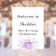 Poster Anniversaire blanc violet fleurs argent bienvenue
