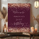 Une affiche de bienvenue pour une fête d'anniversaire de 21e anniversaire (ou de tout âge), fillette et glamour. Un arrière - plan bordeaux décoré de poussière de parties scintillant rose en faux or. Personnalisez et un nom.