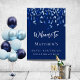Pour une fête d'anniversaire de 50e (ou tout âge). Arrière - plan bleu marine, texte blanc. Décoré de confettis bleus. Personnalisez et ajoutez un nom et un âge.