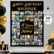 Célébrez n'importe quel anniversaire d'âge pour lui ou elle avec cette photo-mémoire facile à créer affiche affiche avec 59 images carrés et rectangle à travers les années dans éditable couleurs noir et or avec un rétro vintage calligraphie script typographie titre design # ANNÉES DANS LA FABRICATION qui incorpore leur âge et année de naissance dans la conception et votre texte personnalisé au sommet. OPTIONS : L'échantillon est affiché dans une taille de 24x33"; d'autres tailles sont disponibles (choisissez Taille personnalisée pour les bordures paires en modifiant la hauteur et la largeur proportionnellement après avoir cliqué sur l'icône DÉVERROUILLER). Vous pouvez également commander un fichier de téléchargement numérique pour l'impression locale ou transférer la conception à une planche de mousse, bannière, toile de fond ou d'autres produits. ASSISTANCE : Pour obtenir de l'aide sur la modification ou la personnalisation de la conception, le changement de couleur, le redimensionnement, le transfert de la conception vers un autre produit ou la conversion à un téléchargement, contactez le concepteur AVANT DE COMMANDER via l'onglet MESSAGE Conversation Zazzle ci-dessous ou envoyez un courriel à makeitaboutyoustore@gmail.com.