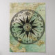 Poster Antique Nautique Compass & Map