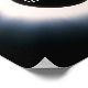Artistic Image of a total solar eclipse in black and white dated août 2017, showing the bright glow of the sun’s corona radiating from behind the blocking image of the full moon.