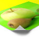 Pomme et poire avec Arrière - plan vert fluorescent.