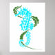 Hippocampe aqua bleu, vert et algues sur le blanc arrière - plan affiche pour enfants.