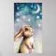 Aquarelle adorable lapin lapin lapin, un tableau d'aquarelle serein d'un petit adorable lapin lapin qui regarde vers le ciel nocturne. Les yeux du lapin sont larges de curiosité et d'émerveillement, reflétant les étoiles chatoyantes. L'arrière - plan est une belle toile d'étoiles scintillantes, avec un soupçon de lune croissant. Les couleurs sont douces et douces, créant une atmosphère tranquille et rêveuse.