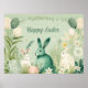 Cette affiche de voeux de Pâques présente une délicieuse aquarelle illustrant un adorable lapin de Pâques entouré de fleurs de printemps. Le design ludique est rendu dans un style art de ligne charmant contre un arrière - plan vert clair et doux, lui donnant un look frais et dynamique. Ce poster est parfait pour envoyer des voeux chaleureux à ceux qui sont chers pendant la saison de Pâques. Cette affiche est personnalisable, vous pouvez modifier chaque texte ou les supprimer si vous préférez écrire à la main.