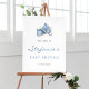 Bienvenue aux invités à votre événement avec ce panneau de bienvenue personnalisable pour le brunch bébé. Il présente une aquarelle illustrant un adorable baby shower bleu. Personnalisez ce signe de brunch en ajoutant vos détails. Ce signe d'accueil bleu pour bébé brunch est parfait pour It's a Boy baby showers.