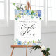 Aquarelle Blue Hydrangeas Couples Affiche de bienvenue douche. Douche à floral blanc et élégant signe de bienvenue avec hydrangées bleu et violet, pivoines, anémones et feuillage. Ce panneau d'accueil fleuri est parfait pour les événements du printemps et de l'été.