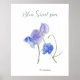 Aquarelle botanique de fleurs de pois doux bleu. Je l'ai créé avec de la peinture à l'aquarelle transparente traditionnelle sur du papier. J'adore peindre les fleurs dans mon jardin quand je ne voyage pas. Les pois doux sont si délicats et parfumés. Ce sont des symboles d'amitié ou de gratitude. Un autre sens est le plaisir béant ou de dire bonté. Il peut être utilisé comme un joli terme d'affection pour un enfant ou un partenaire intime.