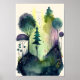 Poster Aquarelle illustration d'une forêt de contes de fé