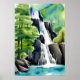 Peinture aquarelle d'une cascade. Un paysage de pierres et d'arbres.