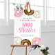 Faites une première impression délicieuse avec ce panneau d'accueil personnalisé pour bébé saupoudré d'eau rose, chocolat blanc et beignets glacés au chocolat avec des arrosages colorés. Conçu avec une palette de charme, ce panneau baby shower "It's a Girl" est parfait pour accueillir les invités à votre douce fête. Customisez facilement le texte pour inclure le nom de votre bébé, la date de l'événement ou le message spécial. Ce signe d'accueil baby shower beignets rose est idéal pour les douches à thème beignets, les fêtes d'arrosage ou tout événement de petite fille douce.