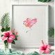 Poster Aquarelle tropicale Flamant rose rose