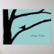Arbre avec silhouette d'oiseau noir bleu nature zen simple inspiration poster de rêve