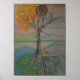Design original en crayon et encre, numériquement reproduit pour Zazzle. Lignes linéaires complexes dessins enchevêtrés sur l'arbre et la lune. Quatre saisons représentées dans l'arbre et l'arrière - plan.
