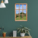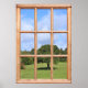 Détendez-vous avec vue sur un arbre d'été sur une vaste pelouse verdoyante, avec un ciel bleu et des nuages au-dessus. Il s'agit d'une scène paisible à regarder par une fausse fenêtre, un effet créé par l'inclusion d'un cadre de fenêtre en bois dans la photo. Crée une vue sur un mur uni que vous pouvez vous déplacer pour vous convenir. Pourquoi ne pas apporter un peu de tranquillité rurale dans votre vie et profiter de l'été toute l'année?