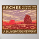 Arche la conception d'oeuvres vectorielles. Point de vue des montagnes de La Sal montrant L'orgue, la tour de Babel, le rocher des moutons et trois commérages dans le parc national Arches à Moab.