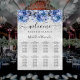 Un poster pour un mariage. Un arrière - plan élégant à l'aspect faux argent décoré de faux éclats de parties scintillant et de fleurs bleues. Personnalisez et ajoutez le nom de la mariée et du marié, ajoutez vos noms d'invités.