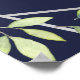 Cet élégant tableau de sièges de mariage présente un cadre géométrique moderne et argenté avec une couronne verte à la mode remplie de feuilles sur un arrière - plan bleu nuit. Supprimez facilement les tables dont vous n'avez pas besoin pour vos invités mariages.
