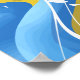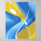 Une oeuvre abstraite dynamique aux formes fluides dans les tons bleu et jaune vifs. Des lignes courbes blanches et des accents ovales créent un sens du mouvement et de l'énergie, ressemblant aux vagues fluides et aux courants d'air. Le design mêle le cool et les contrastes chaleureux, évoquant la fraîcheur, la vitalité et un style artistique moderne.