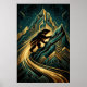 A bear climbing a geometric mountain with a golden glowing trail. Powerful nature-inspired Art Deco illustration for adventure seekers.