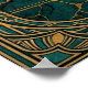 A striking masterclass in Art Deco geometry and natural drama. This illustration features a sharp, angular black silhouette of a pine tree clinging to a jagged teal marble cliffside. Set against a massive, radiant golden sunburst that mimics the Chrysler Building’s iconic crown, the piece is framed by intricate chevron borders and celestial stars. This bold artwork brings a powerful sense of 1920s adventure and architectural luxury to any cabin, office, or modern living space.