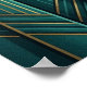 A contemplative black cat silhouette perches on a geometric teal windowsill gazing outward, framed by stylized golden curtain folds and orange sunset rays. This elegant 1920s scene brings peaceful sophistication to bedrooms, hallways and living spaces.
