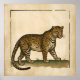 Un léopard aux taches abstraites, mis en valeur par un dégradé subtil de jaune et de marron, dans un style artistique médiéval.
