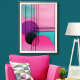 Cette affiche colorée sans cadre présente des cercles et des formes géométriques dans les tons rose, turquoise, violet et noir avec plusieurs fines lignes noires. Cette impression minimaliste ajoutera une touche de couleur à toute pièce minimaliste ou moderne. Choisissez parmi une variété de tailles d'impression qui s'adaptent à des cadres standard économiques pour une façon peu coûteuse de créer une chambre élégante.