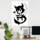 Cet art noir et blanc représente une jeune fille diable aux cornes, à la queue et à la fourche. Le diable se tient devant vous, et on dirait qu'il est sur le point d'attaquer. C'est un art généré par l'IA.