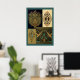 Un collage d'estampes artistiques Art nouveau de Christopher. Un mélange d'art et d'artisanat, d'estampes textiles victoriennes et Art nouveau. Audacieux et élégant. Dans les couleurs noir, or et vert. Cette image est du domaine public et provient de wikimedia commons.