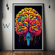 Un cerveau psychédélique coloré dans le noir, dans le style des illustrations caricatures, hyper-détail réaliste, illustrations simples et colorées, anatomie humaine, illustrations psychologiques, lignes audacieuses, couleurs vives.