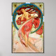 Affiche de lithographie Art nouveau de 1898 de l'artiste tchèque Alphonse Mucha (1860-1939). Belle femme en robe rouge, fleurs dans ses cheveux longs, fluides, rouge vif, son dos arqué, regardant sur les épaules bardées, debout sur ses orteils.