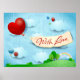 Ballon en forme de coeur et message volant au-dessus de la campagne, art numérique
