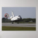 Une navette spatiale Discovery atterrit sur la piste 33 de l'installation d'atterrissage à la navette du Kennedy Space Center en Floride, avec Cape Canaveral.