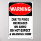 Avertissement : En raison des augmentations de prix sur les munitions ne s'attendre pas un coup de semonce