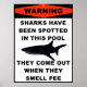 Signal d'avertissement universel demandant aux nageurs de se méfier des requins qui sortent quand ils sentent pipi. Un avertissement humoristique sur la possibilité de faire pipi dans la piscine.