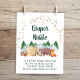 Petit baby shower rustique doux tombola de tombola avec une jolie illustration d'animaux boisés avec leur tente campant dans les montagnes et la forêt, et "Déchets" dans un script vert chasseur.