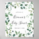 Ce poster de bienvenue de baby shower vert de feuillage est parfait pour un baby shower moderne. Le design se compose d'aquarelle dessinée à la main d'élégantes branches d'eucalyptus botaniques et de feuilles, disposés en de beaux bouquets et motifs géométriques.