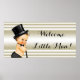 Bannière de baby shower petit homme avec adorable bébé dapper portant une jolie couche noire, chaussures, chapeau et cravate arc sur un arrière - plan noir et beige. Vous pouvez customiser cette adorable bannière de douche bébé garçon en ajoutant simplement du texte dans le style de police et la couleur de votre choix. Vous pouvez également redimensionner le bébé pour inclure son corps entier.