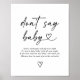 Invitation baby shower invités à participer à un jeu de "Don't Say Baby" avec cette simple et élégante affiche de table, avec un script moderne avec le coeur fleurit.