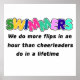 Les nageurs en lettres colorées et les mots Nous faisons plus de tonneaux en une heure que les pom-pom girls ne le font dans une vie