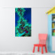 C'est un paysage abstrait fractal très coloré qui m'a fait penser à deux monstres de mer qui s'embrassaient. Il a des motifs complexes avec des spirales et des crochets dans des tons vibrants de vert turquoise, turquoise, bleu royal, prune violet et des touches d'orange. Cette affiche ferait un grand cadeau à tout amateur d'art fractal. #Cracens
