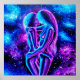 Baiser lesbien en bleu et violet fluorescent et phosphorescent brillant dans la peinture sombre