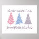Offrez-vous la magie de l'hiver grâce à ce design "Winter Kisses and Snowflake Wives", qui présente trois arbres fantaisistes aux couleurs pastel. Ce design charmant apporte une ambiance douce et cosy à la saison des fêtes, parfait pour répandre la chaleur et la joie. Disponible sur une gamme de produits Zazzle tels que T-shirts, tasses, cartes, etc., ce design fait un cadeau délicieux ou un joli ajout à votre décor de vacances.