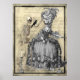 Un collage gothique romantique foncé d'une boule de mascarade d'Halloween, avec des images vintage d'un squelette, une plaque de mode française du 18ème siècle, des bâtons de bougie, un chat pétrifié, posé sur un arrière - plan d'un témoignage manuscrit réel des procès de Salem Witch.© Wickved Lovely